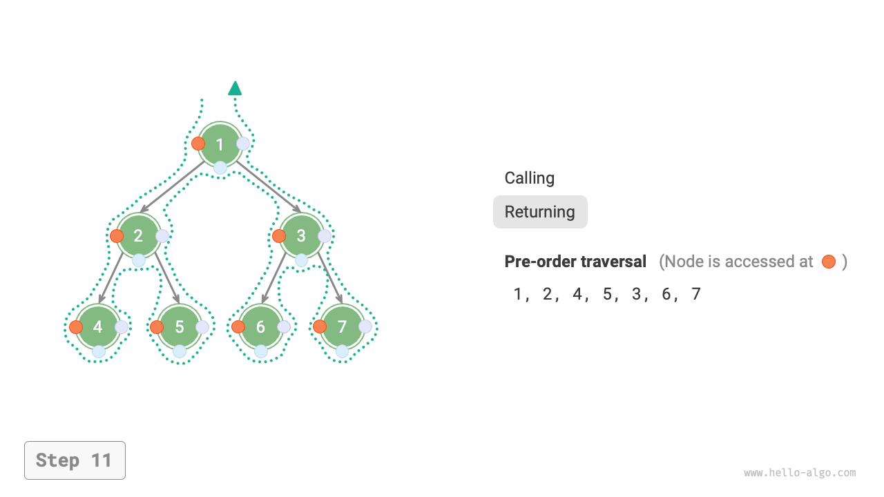 - 「復帰」は関数が戻ることを意味し、現在のノードが完全にアクセスされたことを示します。